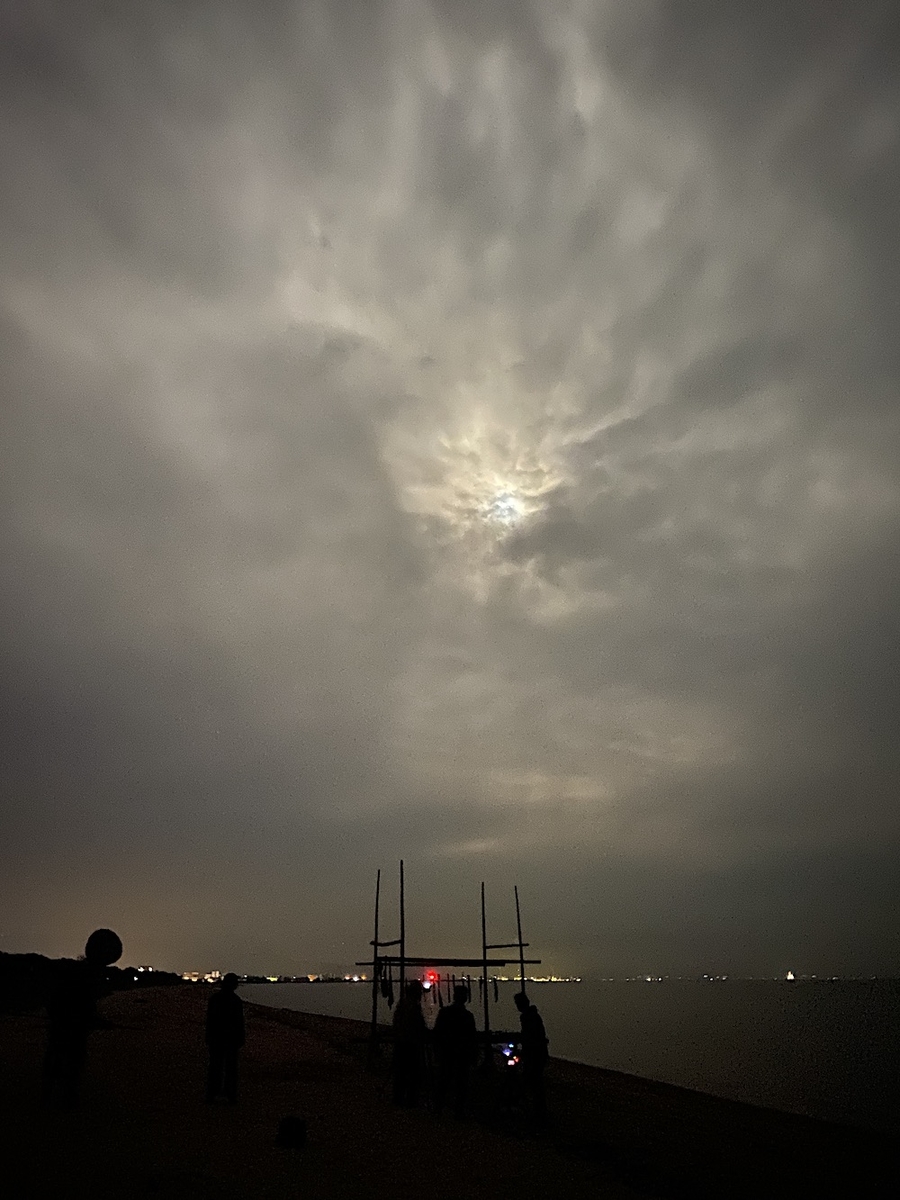 その後、土取さんが浜辺に現れたと同じくして、月も顔を出した。