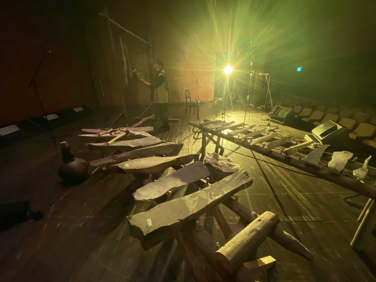 土取さんのサヌカイトソロは、まさに「古代石サヌカイトの神韻」の如きだった。京都公演で久々の響きに目覚めたサヌカイトたちが、響きの祝宴を開催していた様に、土取さんの神業の様なバチさばきからくる何層にも重なる音率と倍音とグルーヴは、一氣に「無」の空間を出現させたほどだった。とにかく凄まじいものを目撃というか体験してしまったという印象でしかなかった。
